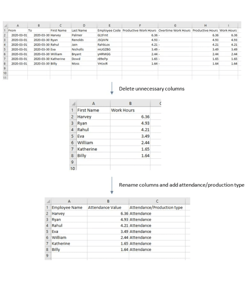 NOTE: Use “Overtime work hours” column instead of “Work hours” column to import overtime hours.